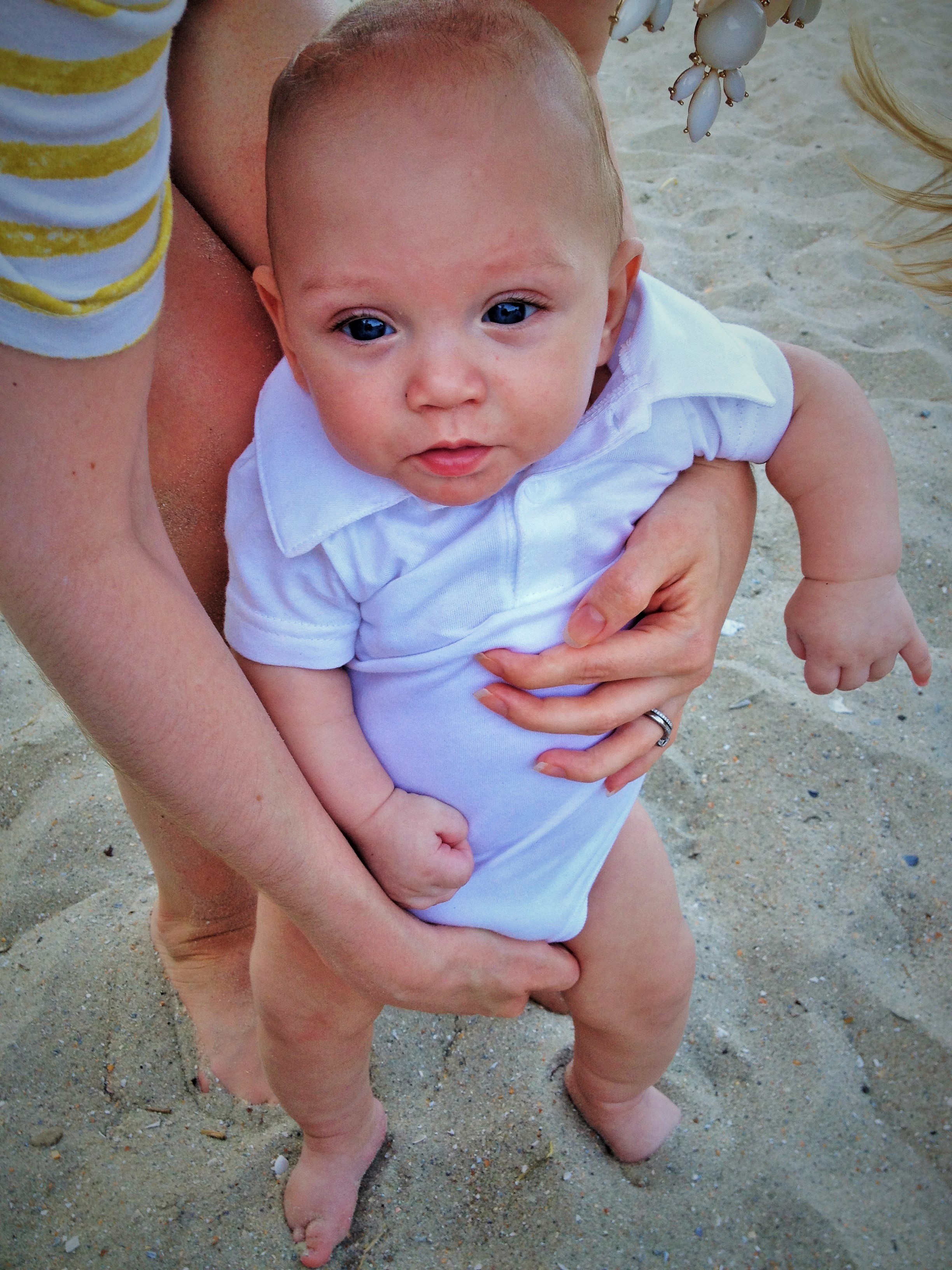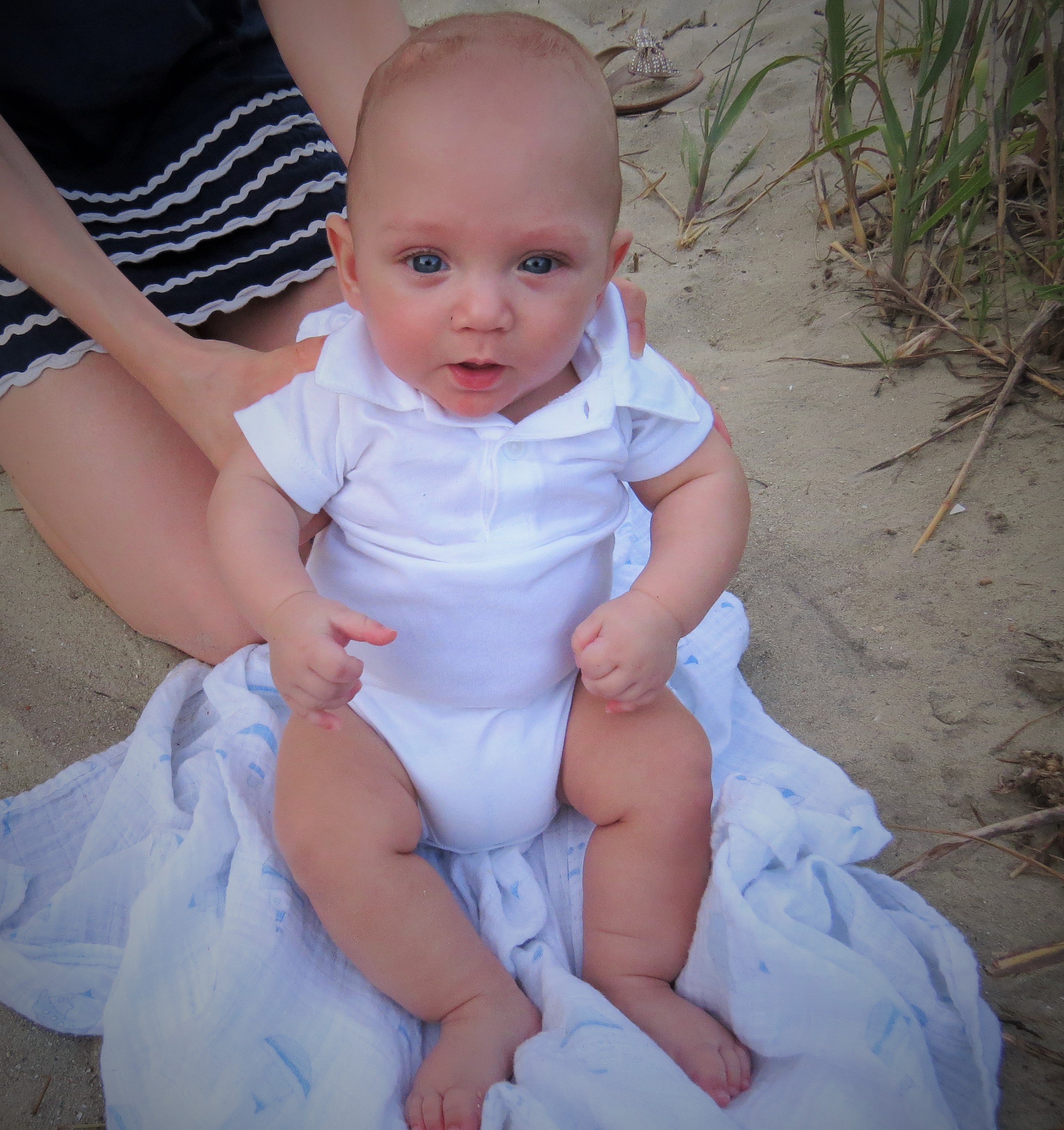 Malachi has to be very cautious when going out into public due to his early birth. His lungs are not as developed, and they sustained damage from being on the ventilator for the first 6 weeks of his life.  Until we can at least get through this first winter, we do not go grocery shopping, to church, or out in public for that matter, because we are protecting Malachi from germs. It takes time for the lungs to regenerate, and the doctors want us to be extremely cautious for the first two years of Malachi’s life. Even a “minor” cold could lead to a hospital stay, and flu or RSV could prove deadly. This is why I had such a hard time deciding if I was going to go to the beach with Malachi or not. But, I just couldn’t stand the idea of Malachi missing out on such an amazing opportunity—to hear the ocean, to feel the sand between his toes…