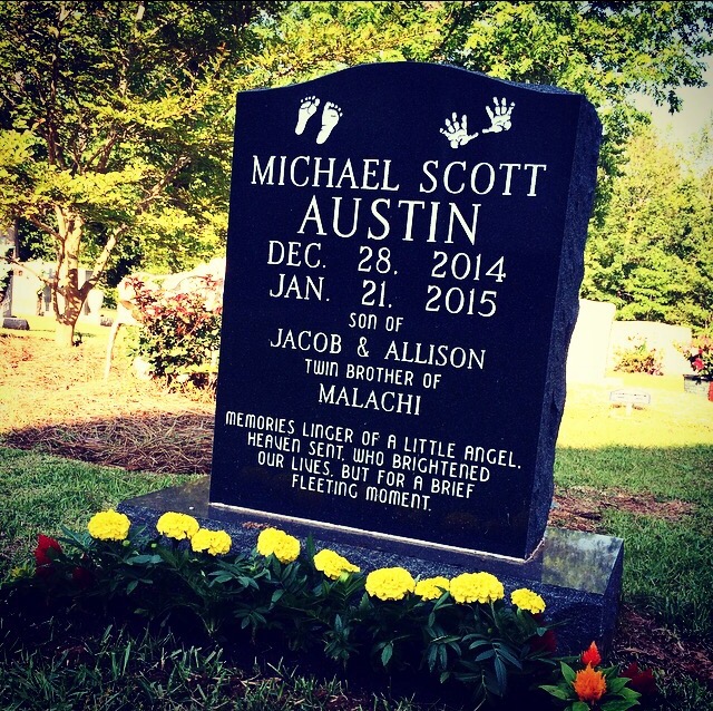 We gazed upon the beauty of your tombstone, and shed tears upon the ground. A labor of love, poured out from a mothers heart, who bears the burden of empty arms.